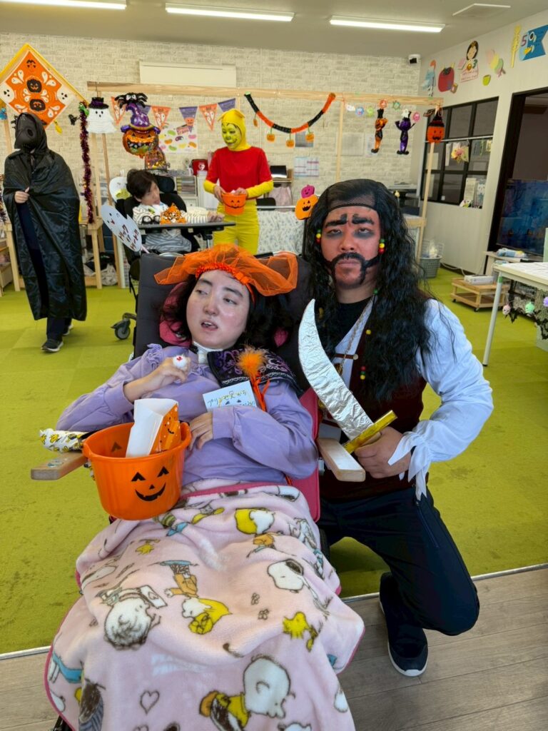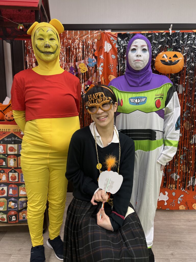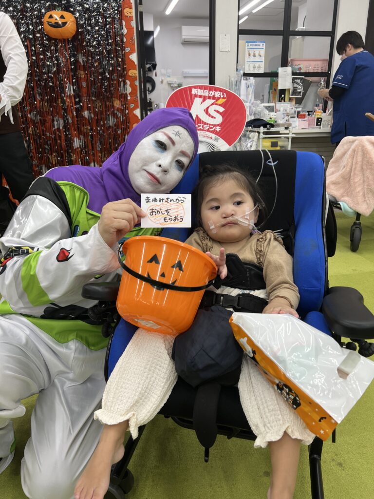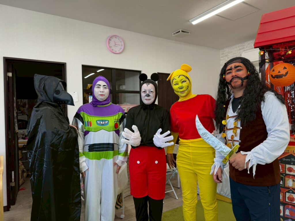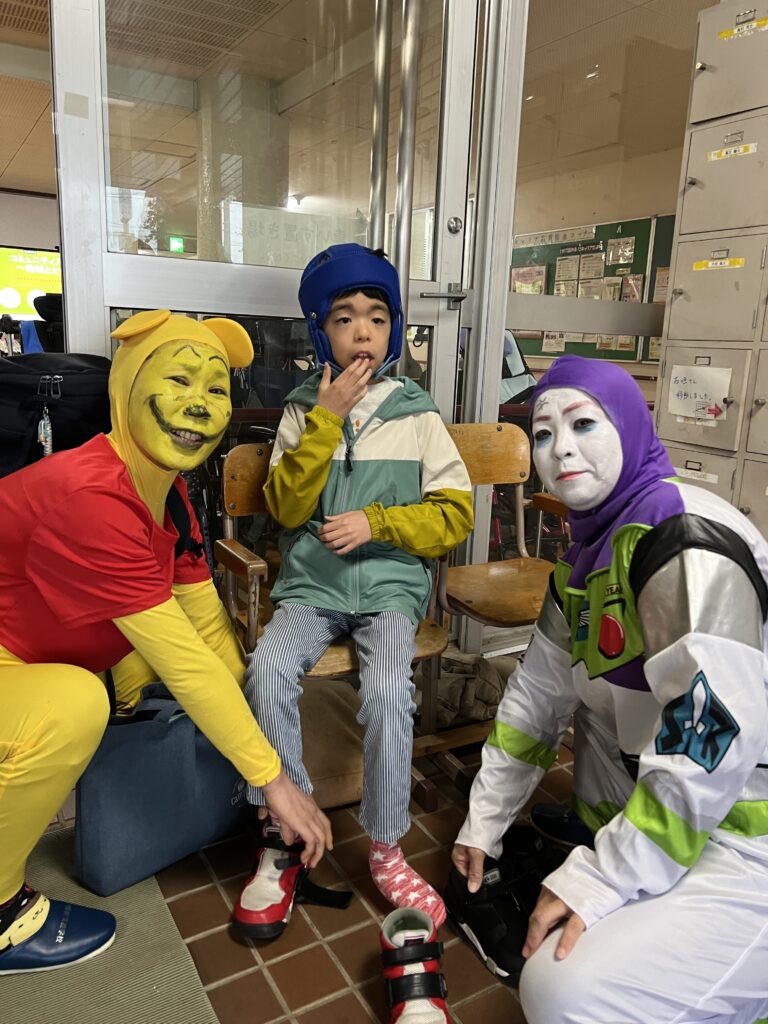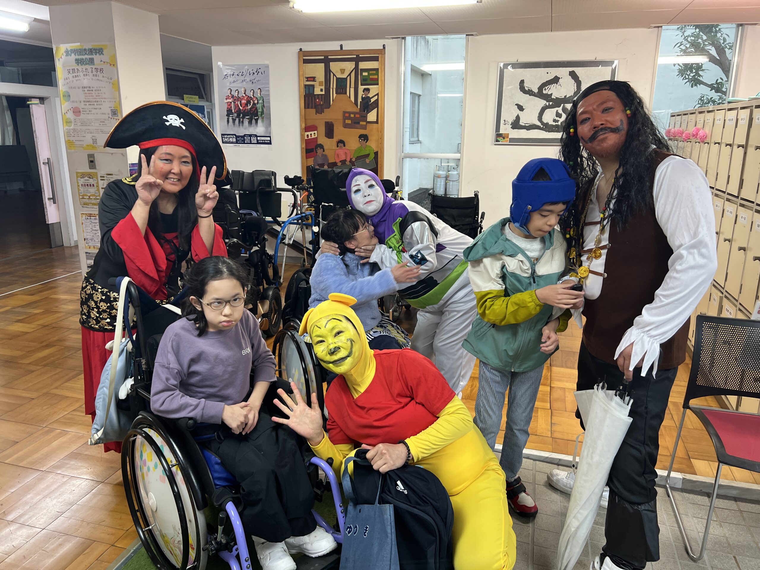 この格好で学校お迎えに行き、先生方や子どもたちに楽しんでいただきました。♬♬♬