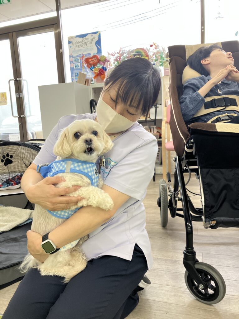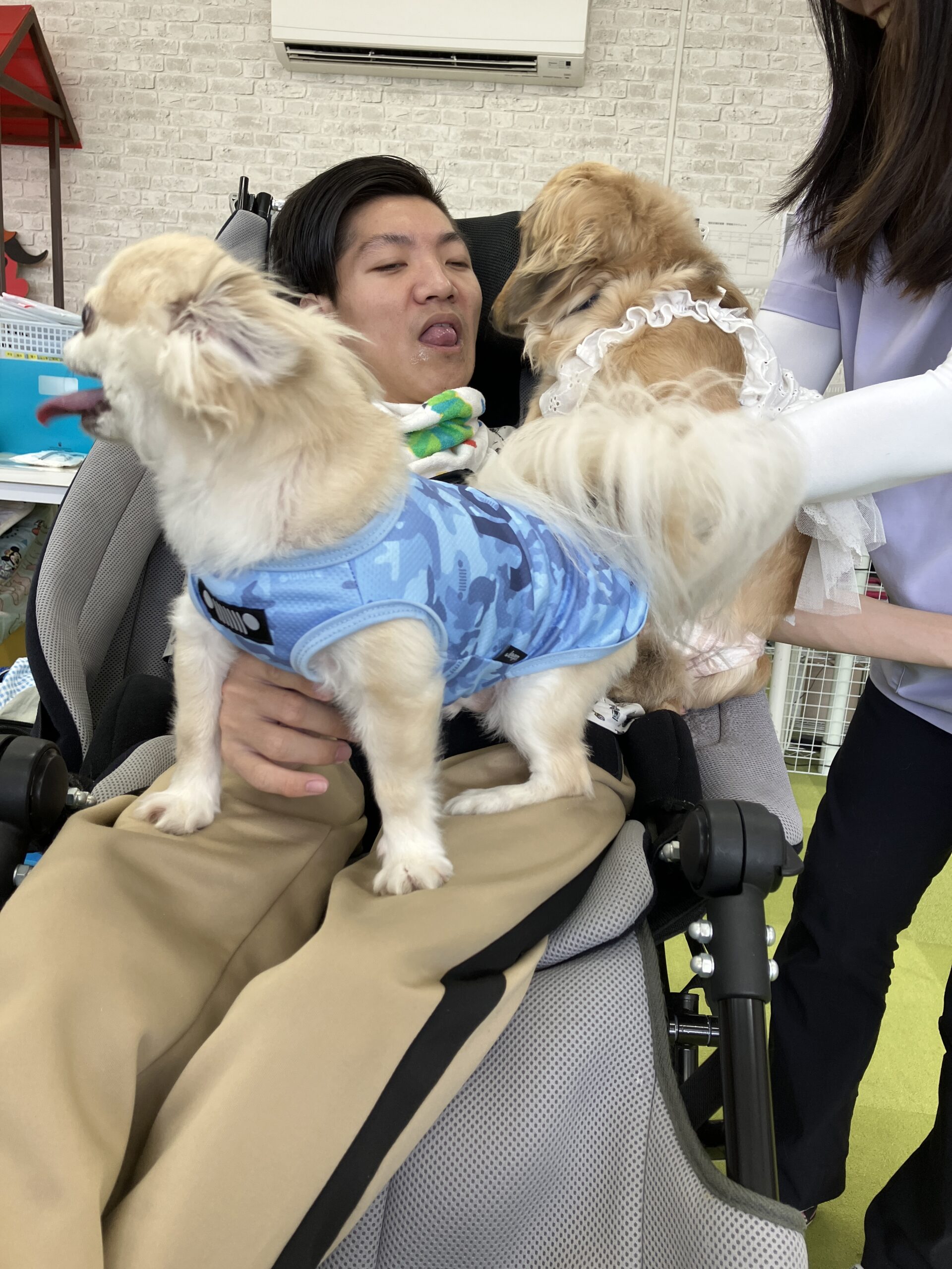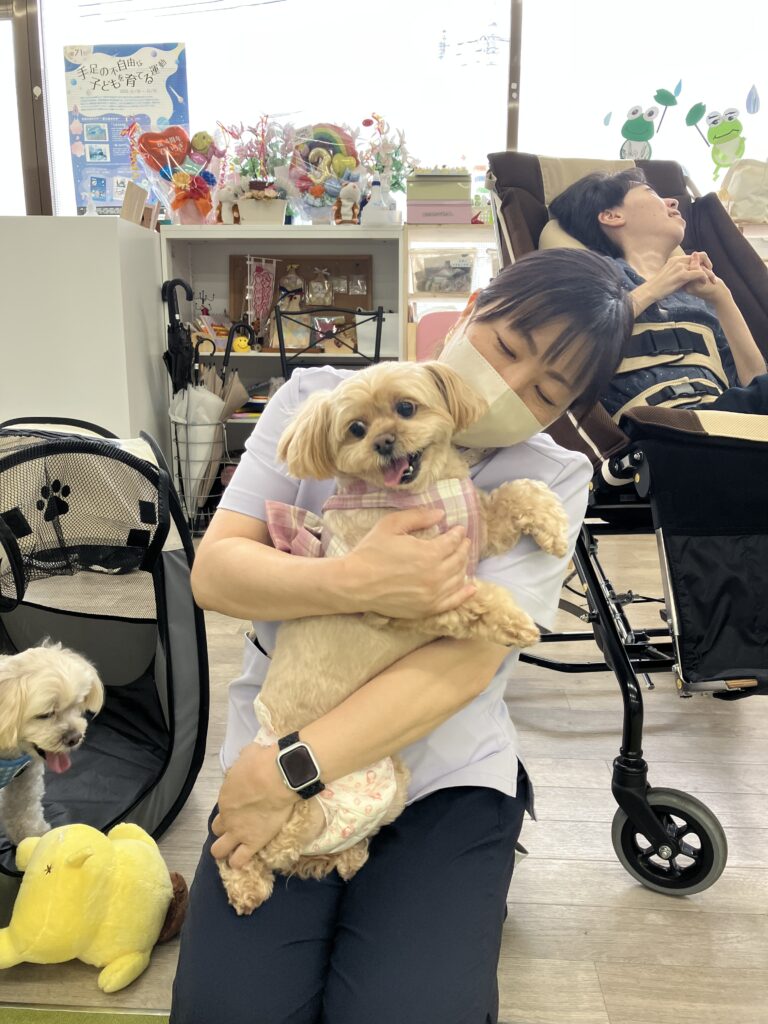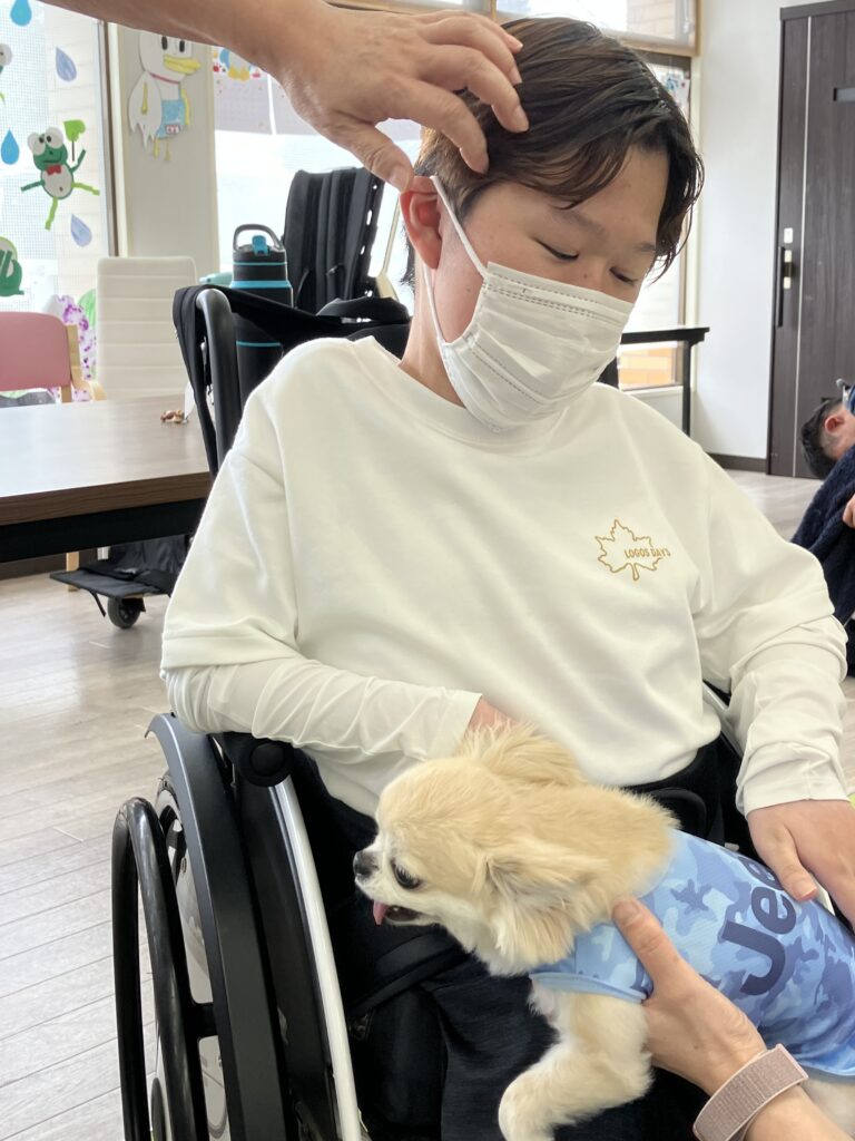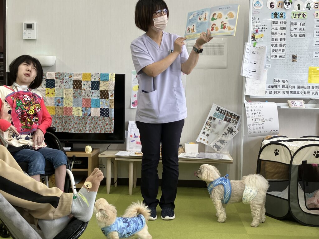 令和7年6月 活動記録 2025.08.05 わんちゃんと触れあおう! 今日はひいらぎにたくさんのワンちゃんが遊びに来てくれました。 みんな大喜びです。 ワンちゃんの絵本を読んでもらい、ワンちゃんとの接し方も知って、 楽しく活動を行いました。